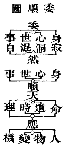 身、心、世、事,谓之四缘。一切世人皆为萦绊,惟委顺者能应之,常应常静,何缘之有?何谓委?委身寂然,委心洞然,委世混然,委事自然。何谓顺?顺天命,顺天道,顺天时,顺天理。身顺天命,故能应人;心顺天道,故能应物;世顺天时,故能应变;事顺天理,故能应机。既能委,又能顺,兼能应,则四缘脱洒。作是见者,常应常静,常清净矣。